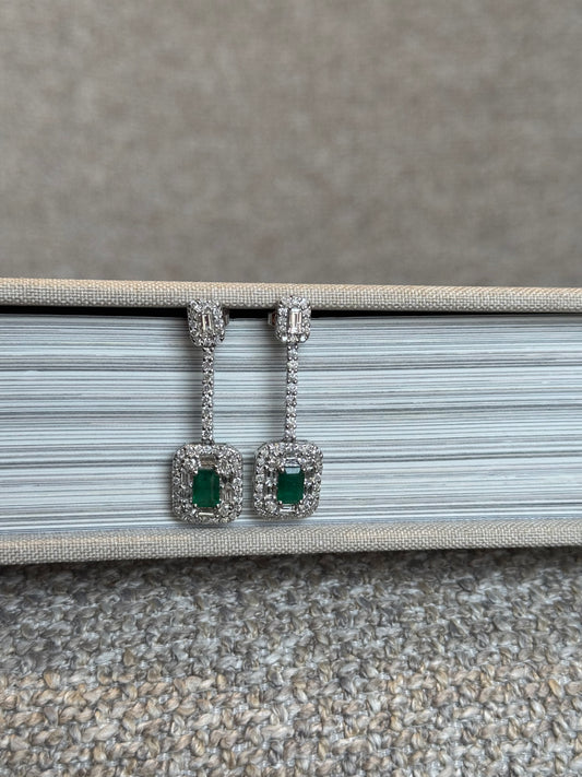 Aretes Largos de Esmeralda y Diamantes en Oro 14k