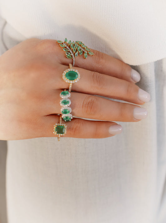 Anillo racimo de esmeraldas y diamantes