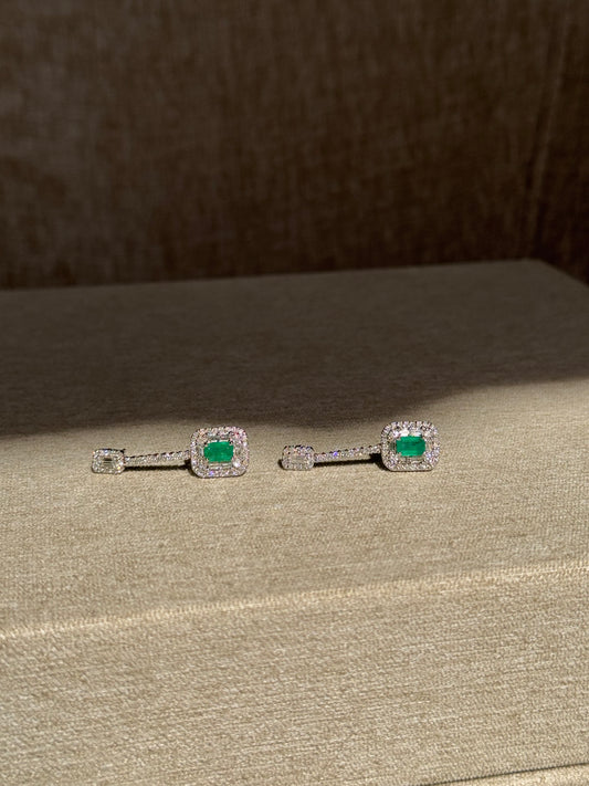 Aretes Largos de Esmeralda y Diamantes en Oro 14k
